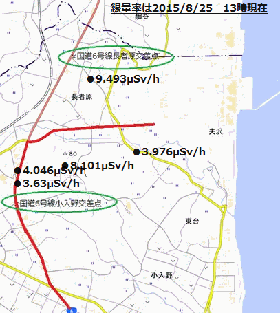 福島第一原発では毎日7千人もの方が働いているわけで、その送迎の車両も多くなる。この送迎のルートの線量率は高い。