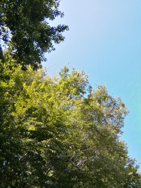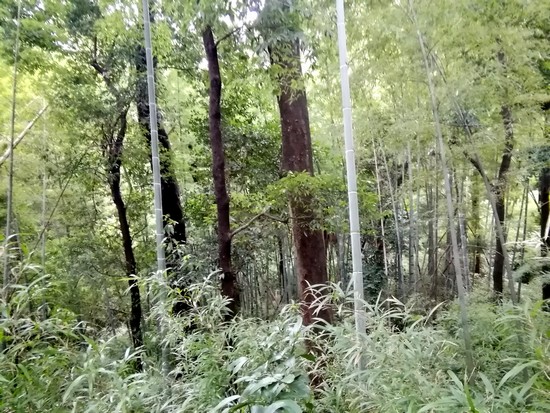 休憩所の南側はこんな林です。日の光が通らないほどの葉の密度があります。