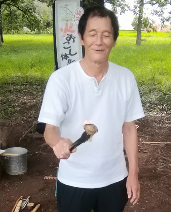 そのそばに火おこし体験をやらせてくれるボランティアの方たち。