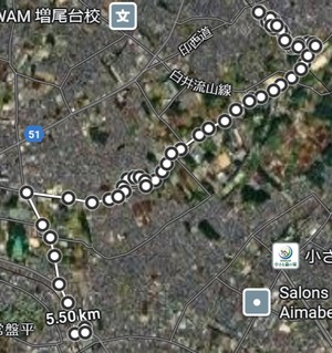 C 都賀駅から千葉家畜市場の前を通り心霊スポットとされる烏の森の周りと、森の中、そして若松台団地の周りをまわり、めいわ郵便局バス停から都賀駅に帰りました。
