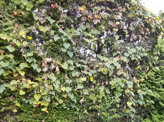 今年はフウの木やカエデ、ハンテンボクの葉の落ち方が早い。