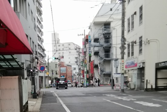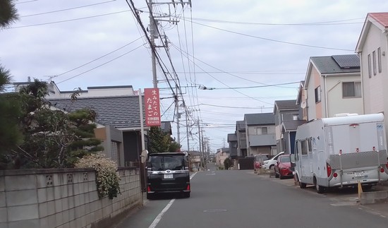 この先のデニーズが見える通り辺りから鮮魚街道が南に少しずれるようでこれまでの通りの延長ではなくなります。冒頭の地図でその部分はオレンジに塗ってあります。