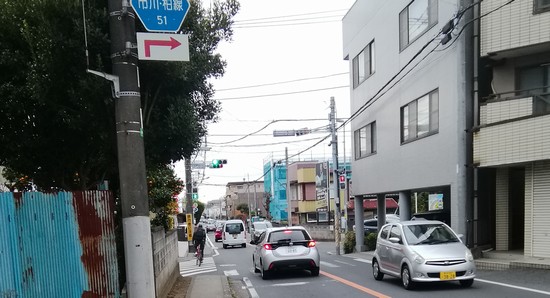 柏市立土南部小学校前の交差点から南側を見ています。前回はこの坂を上って松戸市側に行きました。必ずしも平たんな場所ばかりではありません。