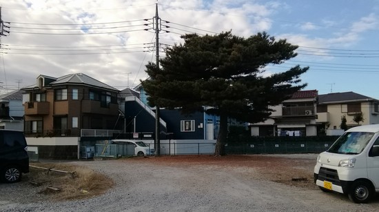 駐車場は、通り抜け禁止とありましたが、学術研究のためごめんね。立派な松が生えています。