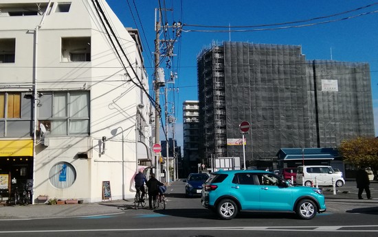 建物は老人ホームです。手前の空き地に障がい者グループホームが建つ予定のようです。