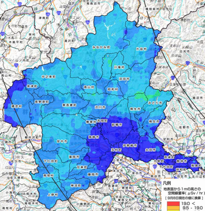 群馬県については、この調査の結果、沼田市北部〜川場村の他、桐生・みどり市北部等に、周囲より放射線量の高い可能性のある地域が存在することが判明、群馬県はこの地域周辺における空間放射線量をサーベイメータを用いて(地上1 m)緊急に測定したという。