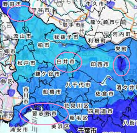白井市の新米の放射性物質検査(予備調査)では、富塚(旧白井村)が検出せず 、谷田(旧永治村) が、22ベクレルと25ベクレルの検出となっている。A地点が富塚、B地点が谷田。二、三度通っただけだが、Bの方が、排水が良くないような印象を受けた記憶がある。