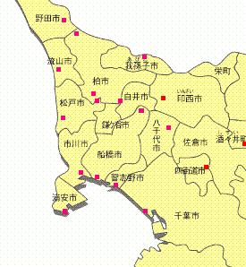 次の図は、千葉県北西部のゴミ焼却場の場所を地図に落としたものだが、この図を作りながら、それぞれの焼却場の雄姿を思い浮かべることができた。