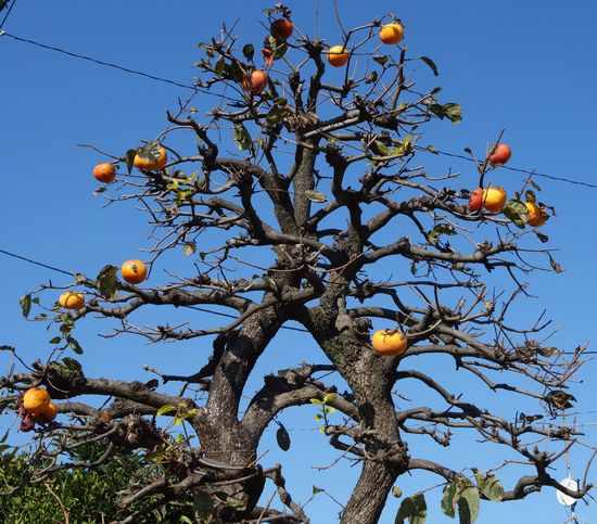 田舎の畑の一角にある柿の木。こんな風景が日本的かもしれません。そういえば、外国の画像で柿の木が写っているのはあまり見ません。