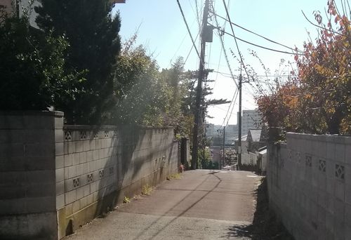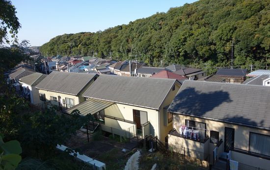 南だけでなく、東の方角も撮影したいと高台の周辺部を回りましたが、木や家にさえぎられていて見通しがききません。結局ぐるっと回って南側から急な階段を下りて南に向かいます。