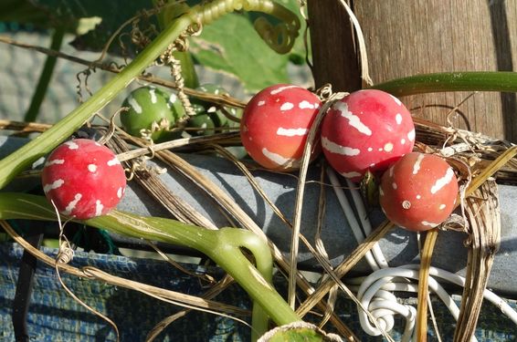 次はニワウルシの種です。花は白いのですが種は風に飛ばされやすいように薄いさやに入っています。黄色がかっており、このように赤みが強い場合もあります。植物は、すでに今年の成果を残そうとしています。