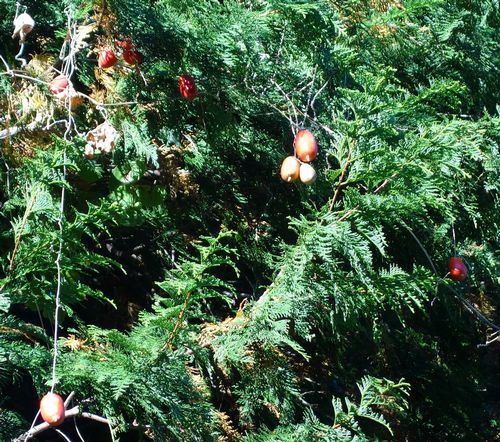 途中、友人が個人の庭に植えてある木に実が1個だけついているのに目を止めました。そして私に、あれは何だろうと聞きます。わからない。ただ、葉からすると珍しい実のようです。