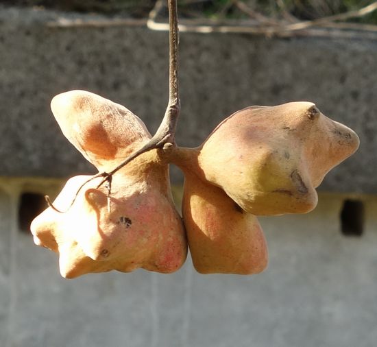 このような不定形な実をつけるものの代表格は、こぶしですがコブシは羽状複葉ではありません。帰宅してから調べましたが見当たらない。
