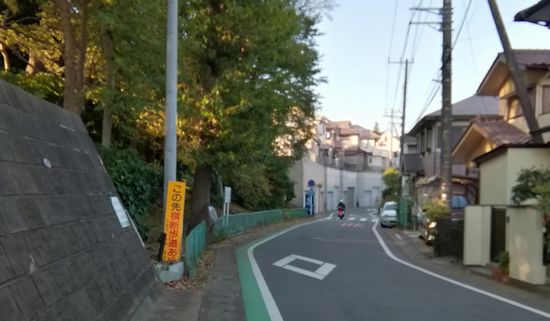 学校の正門から北西方向に走る道路はこんな感じです。