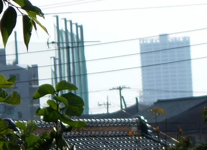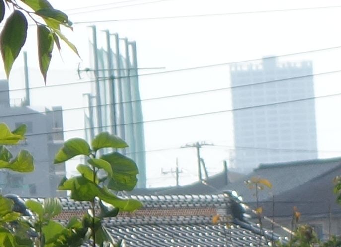 次の画像は上に掲げた元画像のガンマを調整したものですが、電柱の右側にうっすらと超高層マンションが写っています。