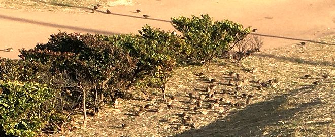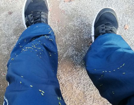 見晴らしの良いところを探して道端に入り込んでいたら、草の実がズボンに。そのままにして歩いたら2時間後にはほとんど落ちていました。草の実もあまり遠くのコンクリートジャングルまでは運ばれたくないはずですから、乾いてきたり、振動があったりするとひとりでに落ちます。