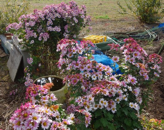 1番目の公園では写真撮影のみ。道中で菊が咲いていました。2番目の公園ではモミジが色づいていました。色鮮やかなモミジは西日の当たった介護施設の庭で撮影しました。