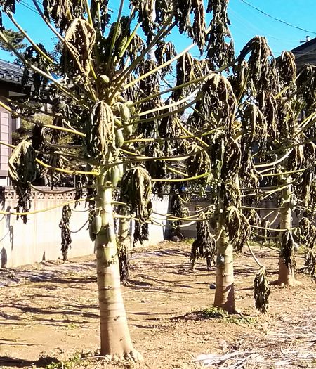 かんきつやリンゴか植えてある庭の話をしました。リンゴは小さな鉢植えを地植えしてから10年も経って最近は樹勢がないと。