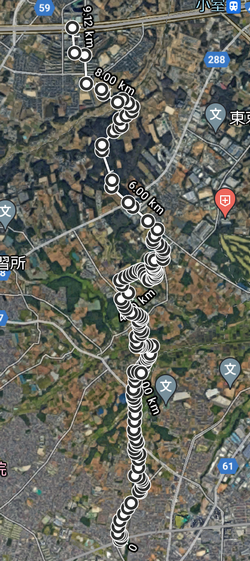 で、この地域に住宅購入をお考えの方のために参考情報も収集してみることにしました。空間線量率です。船橋法典駅から上の経路を通って神明神社隣の公園まで。ちょっと高いところもあります。携帯型記録式放射能測定器は、やはり便利です。取り出すときに画面に触ったら動作がおかしくなって止まってしまいました。