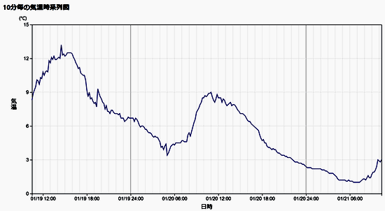 1/20は船橋では午前11時に9度まで上がり、これがピークでした。